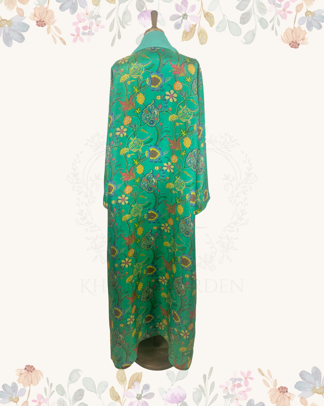 قطعة استثنائية تجسّد الفخامة والندرة، عباية أورغانزا مزخرفة بالورود – إصدار محدود بقطعة واحدة فقط. تأتي بلون أخضر زمردي منعش تنبض عليه ورود حيوية، تعكس جمال الطبيعة وأناقتها بأسلوب فني راقٍ.