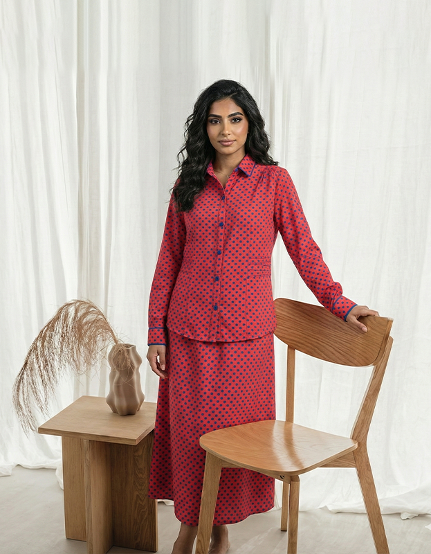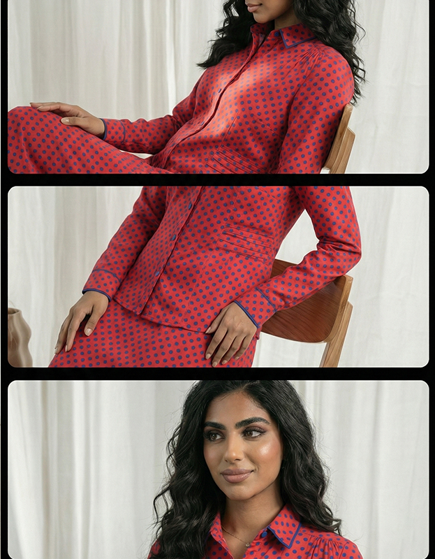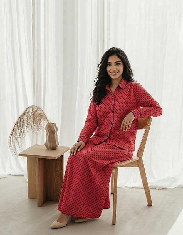 A refined cotton polka-dot set designed for modern women who value elegance, structure, and practicality. Crafted from premium breathable cotton, this set features a classic polka-dot print that adds timeless charm with a contemporary edge.