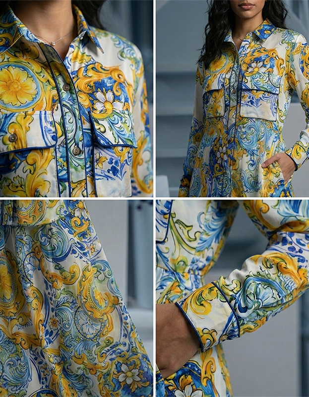 ينسدل القماش بخفة ليحافظ على مظهر أنيق وسلس، ويمكن تنسيق القطعتين معًا لإطلالة متكاملة أو ارتداؤهما بشكل منفصل لخيارات متعددة تناسب مختلف الأوقات.